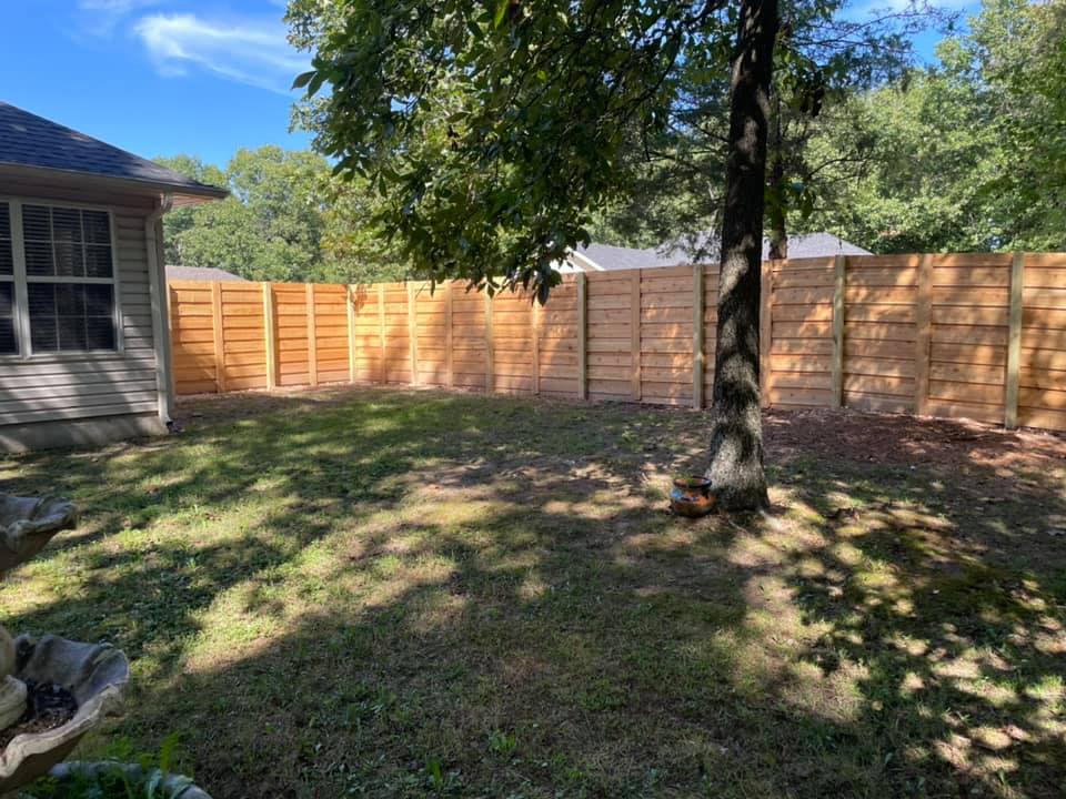 We do NOT use pre-fabricated fence panels. We build custom fences. Custom fences (or stick-built fences) allow us to better follow the lay-of-the-land (topography) and gives a much smoother transition. We can include custom transitions as an upgrade to your fence installation.