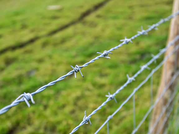 Barbed wire fences are one of the oldest forms of fencing. This fencing system is constructed by steel fencing wire braided together to include sharp edges or points called barbs. Barbs are arranged at intervals along the strands of steel wire. The barbed wire is commonly fastened to wooden or steel fence posts.